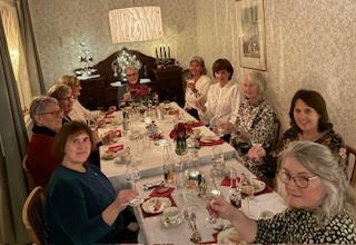 Fru Lysholmvar en sterk og dyktig forretningskvinne i Trondheim. Det ble feiret hjemme hos Liv Hellesvik med 11 flotte damer. Frank kom på kort visitt for å hedre Fru Lysholm. Her ble det lett servering og akevitt.